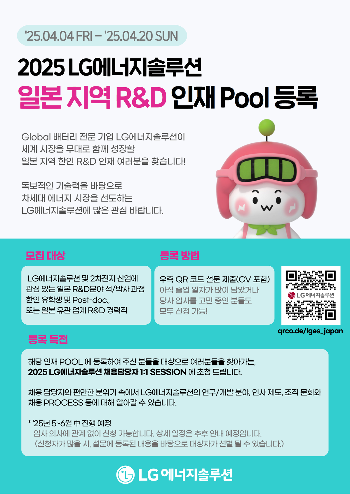 [LG에너지솔루션] 2025 일본지역 R&D 인재Pool 등록 안내